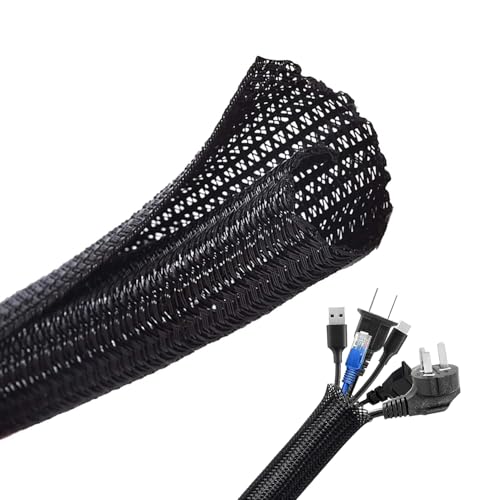 YBHWOGI ケーブル収納スリーブは、長さ約10M、直径13mmでDIY切断可能。防塵・耐高温・耐摩耗性に優れ、ペットの噛み防止にも最適な家庭用/オフィス用ケーブルオーガナイザーです。