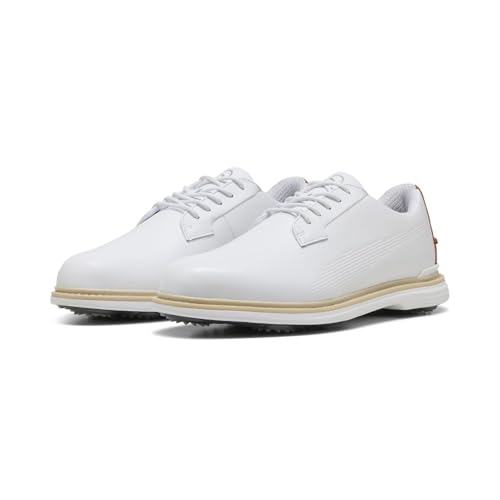 プーマのゴルフシューズ、ロイヤル メンズは、プーマホワイトとレザーブラウンのコンビネーションでスタイリッシュ。サイズは30.0 cmで、快適なフィット感が特徴。優れたグリップ力と耐久性を備えています。