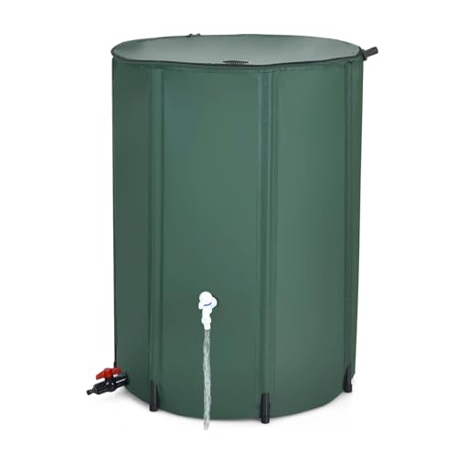 200Lの屋外折りたたみ式ポータブル雨水タンク。簡単設置で防災や家庭用に最適。園芸植物の灌漑にも対応し、雨水を収集して節水可能。