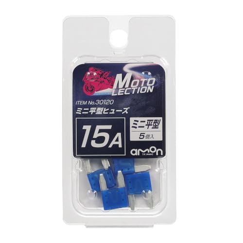 エーモンのミニ平型ヒューズ15Aは、バイク用でDC6V・DC12V車対応。サイズは幅約11mm、高さ約16mm、厚さ約4mmです。信頼性の高い保護を提供します。
