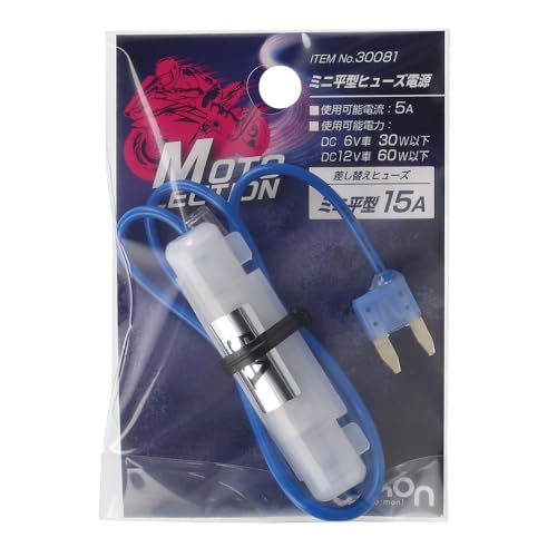 エーモンミニ平型ヒューズ電源は、バイク用の差し替えヒューズで、ミニ平型ヒューズ15A(型番30081)が付属。信頼性が高く、安全な電源供給を実現します。