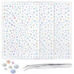 3枚のラインストーンステッカー。クラフト用のクリアクリスタルデカール。サイズは3/4/5/6mm、ライトグリーン。975PCS入り。メイクアップやネイル、ヘアのデコレーションに最適。