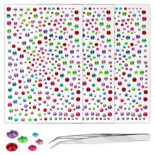 ラインストーンステッカー975PCS、クリアクリスタル仕様。3/4/5/6mmサイズ、メイクアップやネイル、クラフト用に最適。ピンセット付きで簡単貼付。デコレーションに彩りを加えます。
