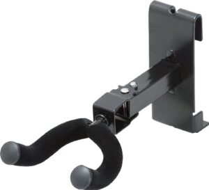 STRICH ギタースタンドは木製のフロアラックで、3本のギターを収納可能。省スペース設計で、自宅やスタジオ、ステージに最適。ウォルナット色のL-3AWモデル、アコースティック、エレキ、ベース対応。