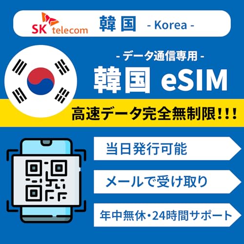 韓国のeSIMは、3日間の完全無制限データ通信が可能(低速なし)。当日発行可能で、電話番号不要。LINEで年中無休・24時間サポート付き。