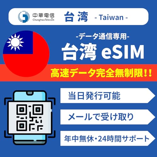 台湾のeSIMは10日間完全無制限(低速なし)で、当日発行可能。データ通信専用、電話番号なしでSIMフリー端末に対応。説明書付で、LINEを使った年中無休・24時間サポートあり。