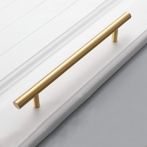Zehaiwlの真鍮キャビネットハンドルは、キッチン食器棚やワードローブに最適なTバー型のプルハンドルです。純銅無垢製で、ブラッシュドゴールド仕上げが特徴。穴中心は320mmです。