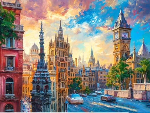 / 油絵 数字キットによる絵画 塗り絵 大人 手塗り DIY絵 デジタル油絵 初心者と大人がキャンバスに番号でペイントすること手芸 画材 手工芸 キット DIY 芸術, フレームレス, ためのギフトインテリア 壁飾り ホームデコレーション – 都市 建築 O-617