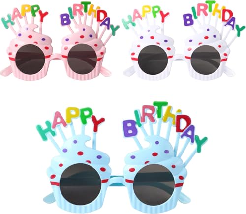 3個セットのバースデーメガネは、誕生日パーティーに最適なコスプレアイテムです。ハッピーバースデーのデザインで、子供から大人まで楽しめる飾り付けのアクセサリーとしておすすめです。