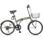 City-crews CC10 自転車は20インチの折りたたみ自転車です。6段変速、前後泥除け付きで軽量・小型設計。46Tフロントスプロケットを採用し、カーキカラーが特徴です。
