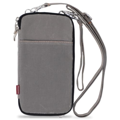 NeedNetworkのパラフィン帆布製スマホポーチは、ショルダーバッグやウエストポーチとしても使え、RFIDスキミング防止機能付き。大容量で小物入れにも最適。斜めがけ可能なアクセサリーポーチです。(グレー)