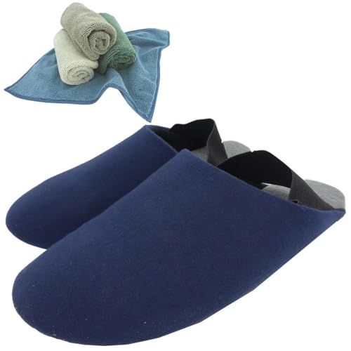 防災スリッパ(折りたたみ・28cm・メンズ)は踏み抜き防止インソールを備え、災害時に適した安全靴。地震対策グッズや避難セットに最適。大人用、かかとありのルームシューズ。ネイビー、Lサイズ。