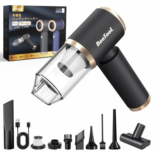 BeeToolのハンディクリーナーZX-106は、25000Paの強力吸引力を持つコードレス掃除機。乾湿両用で、吹き飛ばし、吸引、空気入れ、空気抜きが可能。超軽量0.36kgでUSB充電式。日本語説明書付きで、業務用や家庭用にも対応。