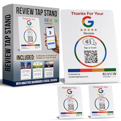 Googleレビュー用スタンド3スタンドセット。NFC&QRコード対応で即レビュー。再利用可能なホワイトアクリル製。北米製。