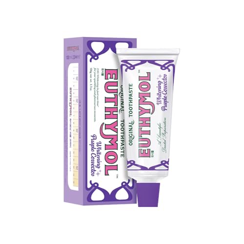 【EUTHYMOL】ユーシモールホワイトニングパープルコレクター歯磨き粉106g。濃密泡で使いやすく、クールミントの清涼感が口臭ケアに最適。ピーチの香りではありません。