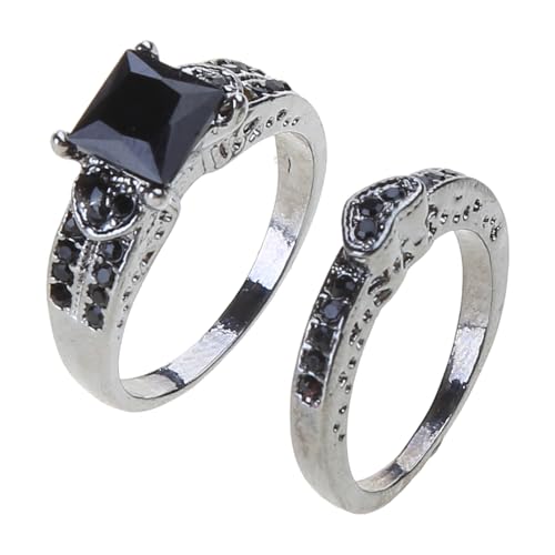 HIOPOIUYTの合金ウェディングフィンガーリングは、結婚指輪や婚約指輪として最適。ブラックジルコンのデザインが特徴的で、カップルリングとしても人気。