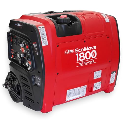 カスタムジャパンのProTOOLs EcoMove1800は、1800Wのインバーター発電機。横置き可能でキャスター付、オートチョーク機能搭載。スマホでの遠隔操作が可能で、正弦波出力、静音設計。家庭用、50Hz/60Hz切替対応。