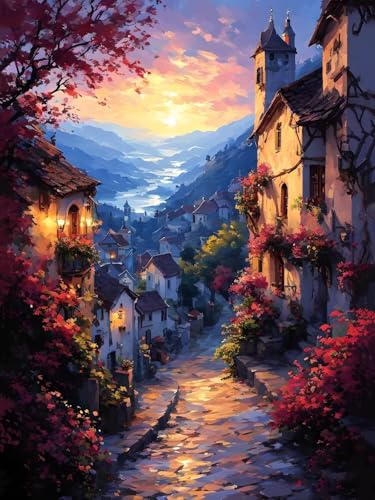 / 油絵 数字キットによる絵画 塗り絵 大人 手塗り DIY絵 デジタル油絵 初心者と大人がキャンバスに番号でペイントすること手芸 画材 手工芸 キット DIY 芸術, フレームレス, ためのギフトインテリア 壁飾り ホームデコレーション – 町 O-527