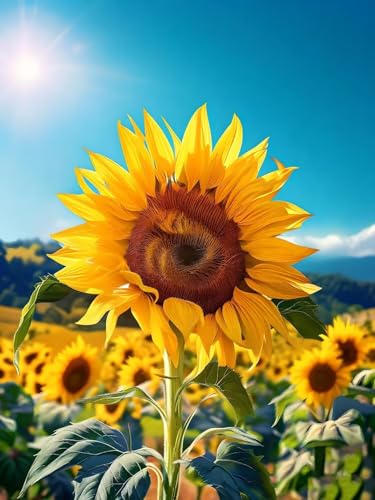 油絵数字キット、初心者向けのDIYアート。キャンバスに番号に従って塗り絵を楽しむ。ひまわりデザイン(O-509)、フレームレスで壁飾りやインテリアに最適なプレゼント。