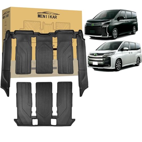 MENIIKARの新型トヨタヴォクシー・ノア90系用3D立体フロアマット。防水、滑り防止、耐汚れに優れたTPE素材製で、7人乗りハイブリッド・ガソリン車対応。2-3列目用のカスタムパーツ。