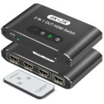 3PC切替 HDMI切替器は、4K対応で3入力1出力のスイッチャーです。PC、PS4、PS5、Nintendo Switchに対応し、ワンタッチ切替とリモコン付きで便利です。アルミ製で耐久性も抜群。