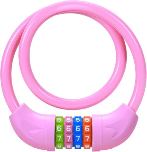 Sportneer自転車鍵は、4桁ダイヤル式のワイヤーロックで長さ65cm、直径10mmの防水・錆びにくいデザイン。カギ不要で携帯便利、特に子供用に最適です。ピンクカラー。
