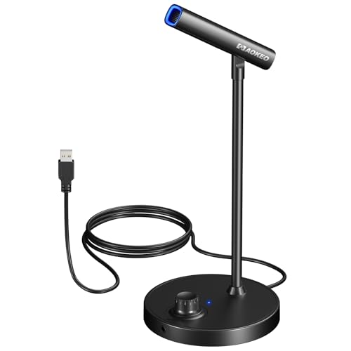 Aokeo USBマイクは、PC用のゲーミングマイクで、ボリュームコントロールボタン付き。録音、ポッドキャスティング、ストリーミング、YouTube、PS5/PS4、Macノートパソコンに対応。
