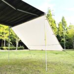 AIRISのキャンピングカー用オーニングサイドシェードは、天然コットン製で遮熱効果があります。サイズは幅360cm、長さ190cmで、6mm芯地強化。FIAMMA、THULE、DOMETIC互換です。