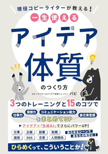「一生使えるアイデア体質のつくり方」は、3つのトレーニングと15のコツを通じて、仕事力や発想力、コミュニケーション能力、自己肯定感を向上させる方法を紹介。あらゆるシーンで役立つ内容です。