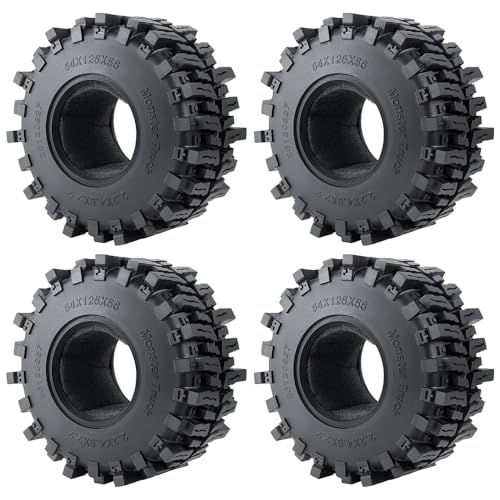 RCクローラータイヤ 2.2ホイールタイヤは、全地形対応のアドベンチャー125㎜タイヤです。SCX10やAXI03004などのラジコンカーに最適で、優れたトラクションを提供します。