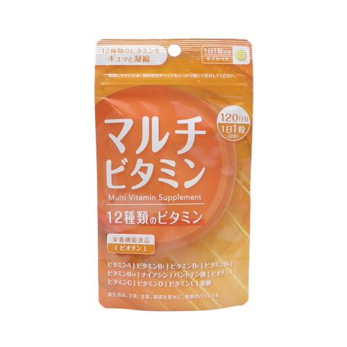 マルチビタミン タブレット120日分。12種類のビタミンを含む栄養機能食品。ビオチン配合で、健康維持をサポートします。毎日の栄養補給に最適。