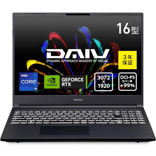 mouse DAIV N6は、Core i9 14900HXとRTX4090を搭載した16インチクリエイターノートパソコン。64GBメモリ、1TB SSD、3072×1920の高解像度で、動画編集やCAD、3DCG向けに最適。3年保証付き。