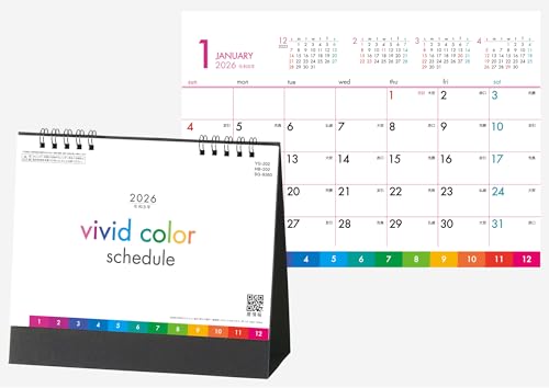 卓上カレンダー 2026年版 ビビッドカラースケジュール SG-9360(HB-202)は、インデックス付きで5か月表示。鮮やかな色合いで、スケジュール管理が楽しくなります。シンプルなデザインが魅力。