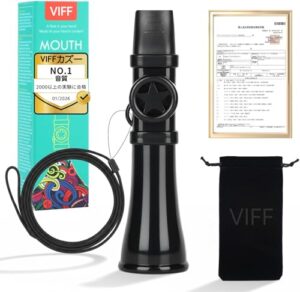 VIFF カズー 楽器 【初心者簡単に演奏】 – 殿堂入り器音色 – 軽量コンパクト 【国内食品衛生法&ST基準安全に合格】 口笛・子供向け音楽啓蒙・優質洗える耐久性のあるABS素材・ストラップ&収納袋付 ブラック