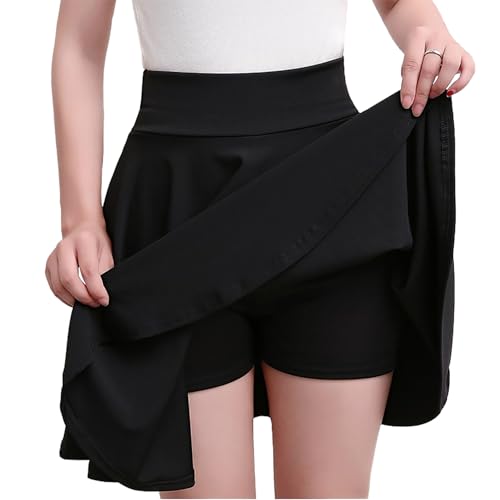 フレアスカート・黒・ブラック・45丈・ウエストゴム・韓国風・インナーパンツ付き・ハイウエスト・Aライン・ミニ丈・シンプル・上品・エレガント・無地・スポーツ・美脚・普段着・REI211