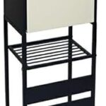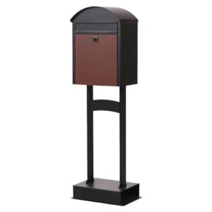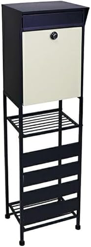 モダンな置き型スタンドポスト。ダイヤル鍵付きで盗難防止機能あり。スリムなデザインと棚付きでおしゃれな北欧風。ネイビー×ホワイトの色合いが特徴で、郵便受けとして最適。