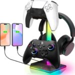 ZNikoyidy RGBヘッドホンスタンドはUSBポート2つ搭載、10種類のライトモードでゲーマーに最適。すべてのイヤホンアクセサリーに対応、贈り物にもおすすめ。