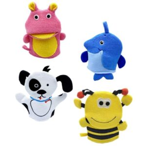 TOKIDNY バスグローブ4枚セット 漫画デザインの入浴用擦りミット 泡立ち良好なボディ洗浄用手袋 携帯に便利な軽量コンパクト ベビーケア用