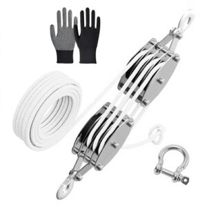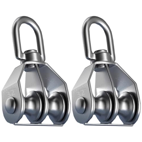 シュウ氏テク M32 ステンレス製二重プーリーは、貨物輸送やクライミングに最適。耐久性に優れたSUS304材質で、耐荷重は250 kg。滑車ローププーリーが2個セットになっています。
