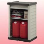 幅57.5×奥行き48.5×高さ90.5cmのスリムな屋外収納庫。おしゃれなデザインで、庭やベランダにぴったり。収納力もあり、物置やロッカーとして使えます。