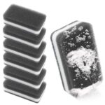 HOMEXCELキッチンススポンジ6個入りは、キズをつけず泡立ちが良い設計。研磨粒子がなく、水切れも優れています。台所に最適なロング型で、グレーのデザインが特徴です。