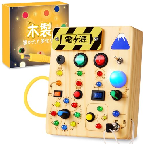 ビジーボード モンテッソーリ玩具は、1~3歳向けの知育玩具です。LED機能付きで男の子・女の子両方に人気。木製で安全、誕生日プレゼントに最適な赤ちゃんのおもちゃです。