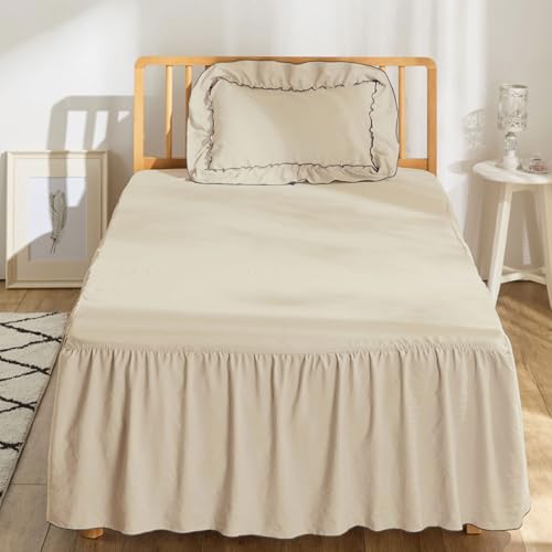 ベルーナのシングル3点セット(555722-109)は、かわいいフリルデザインの布団カバーで、吸汗性や光沢のあるピーチスキン素材を使用。ずれ防止機能も備え、掛布団カバー、ボックスシーツ、枕カバーが含まれています。