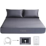 シルバーファイバーを使用した接地ボックスシーツ。99cmx75インチx35cmサイズで、オーガニックコットン製。コード付きで、快適な睡眠環境を提供。グレー色でスタイリッシュなデザイン。