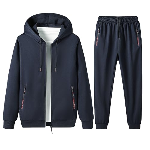 [wolass] スウェット メンズ パーカー ズボン 上下セット メンズ ジッパー アウター ズボン 無地 ゆったり 通気 カジュアル スポーツウェア ランニングウェア 吸汗 速乾 春秋冬服 ジャージ ルームウェア 長袖 トラックスーツBlue 2XL-2
