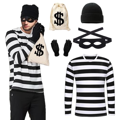 囚人服コスプレでハロウィンや学園祭に最適な長袖コスチューム。白黒のデザインで、大人用XLサイズ。保温性が高く、防寒にも優れた面白い衣装です。
