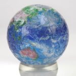 やのまんの60ピース3D球体パズル、クリアEARTH(直径約7.6cm)は、2003-510モデル。ピース請求はがき、台座、組立見本付きで、楽しみながら立体的な地球を作れます。