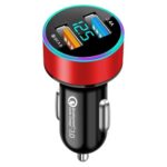 2024強化版ILYAML車載充電器は、2USBポート(4.8A対応)で急速充電、電圧測定機能付き。LEDデジタルディスプレー搭載、12~24V車対応。iPhone, Android, IQOSに対応。レッド色。
