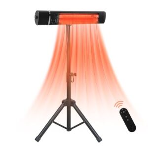 ハロゲンヒーター 電気ストーブ PSE認証済み 1秒速暖 赤外線炭素繊維ヒーター 省エネ 500/1000W/1500W 3段階温度調整可能 転倒防止 全方位暖房 IP65防水 高速暖房縦型 テラスヒーター 過熱保護 屋内/屋外用 (SF-104 三脚スタンド付)