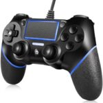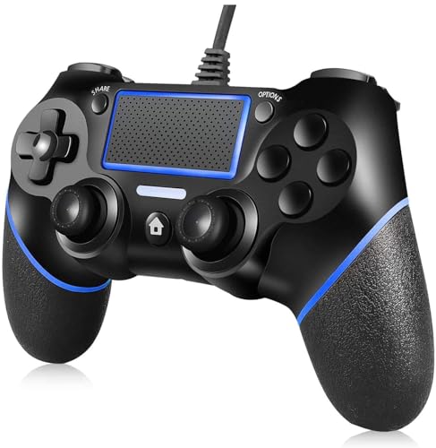 PS4用有線コントローラー。デュアル振動機能搭載で臨場感抜群。PS4/PS4 Slim/PS4 ProおよびPC対応。スタイリッシュなブラックブルーラインデザイン。